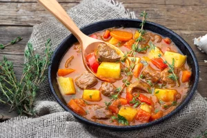 Lecsó është një ragu i trashë me perime ose domate. Është një ushqim i mrekullueshëm komod për t’ju kaluar dimrat e ftohtë të Budapestit. Kjo pjatë shumëngjyrëshe përbëhet nga domate, speca të ëmbël, qepë dhe paprika.