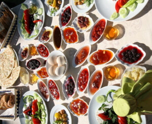 “Perimet për mëngjes” u desh pak të mësohesh, por përhapjet e përpunuara kahvaltı u bënë shpejt një nga aspektet tuaja të preferuara të kulturës turke. Kastravecat, domatet, ullinjtë me kripë, vezët, disa lloje djathi dhe një ndihmë bujare e bukës së freskët janë pikat kryesore në çdo tryezë mëngjesi. Dhe sigurisht, çay. Kupë mbi filxhan të vogël tubash çay të nxehtë. Pansiyonet dhe hotelet shpesh përfshijnë reçel vendas, fruta të freskëta, börek (një pastë si kugel e mbushur me djathë ose spinaq), Nutella dhe tahin pekmez (një përzierje e tahinit dhe melasës së rrushit ose manit) për t’u përhapur në bukë. Shumë restorante, shpesh të vendosura në pyll ose në fshat, që shërbejnë köy kahvaltısı (mëngjes fshati) zgjerojnë më tej menunë për të përfshirë oferta si bazlama të nxehtë, me gjalpë, gjigante si kifle angleze dhe sucuklu yumurta (vezë të skuqura me sallam).
