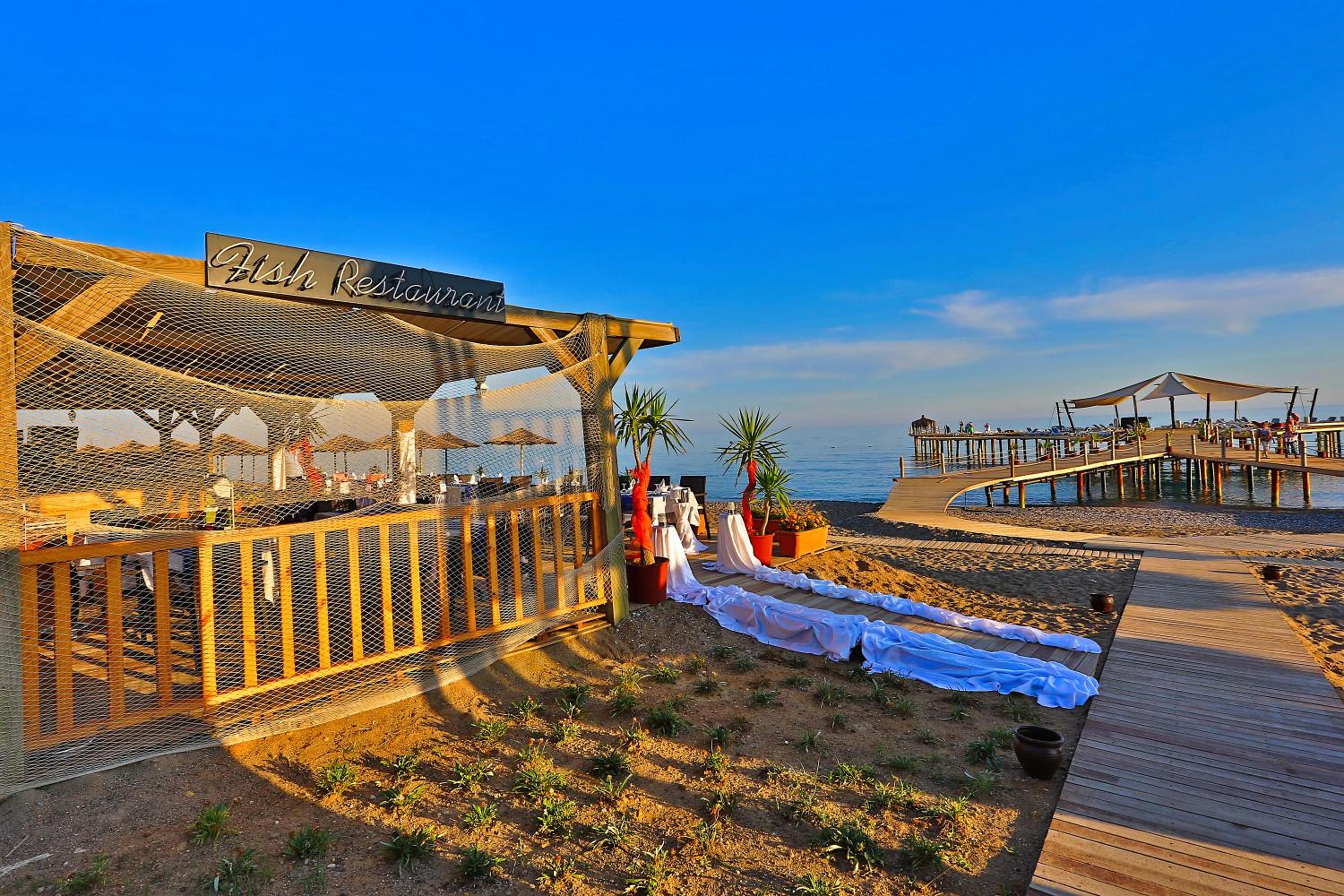 PËRMBAJTJA: Restoranti kryesor me byfe të hapur Restorantet A’la Carte – turke, peshk, italisht, meksikan, Lindja e Largët, bare rreth kompleksit të hotelit. Doktori, babysitting, lavanderi, telefon, faks, internet, qendër tregtare, me qira një makinë janë pagesë shtesë. Interneti Wi-Fi në të gjithë hotelin është pa pagesë.