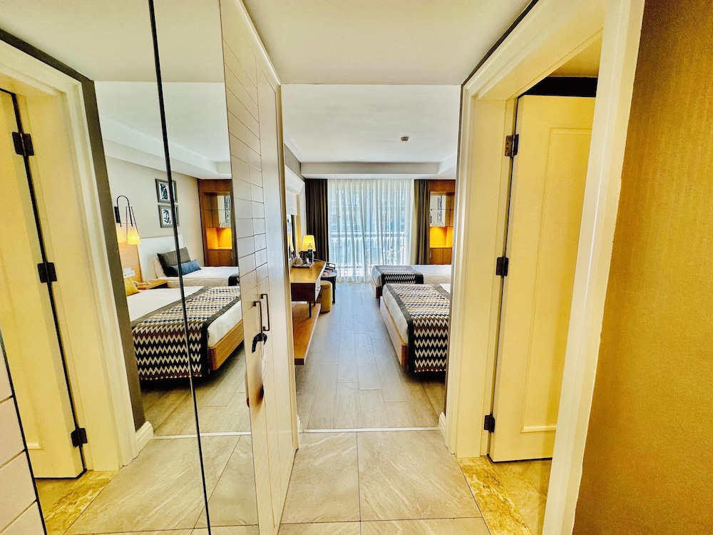 Nëse po planifikoni pushime në Antalya me familje ose grup shoqëror, është e rëndësishme të kontrollohen edhe opsionet e shtretërve shtesë, dhomat familjare dhe konfigurimet për fëmijë: hoteli ofron Family Suite, 2 Bedrooms dhe Family Room, 2 Bedrooms.