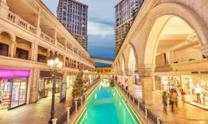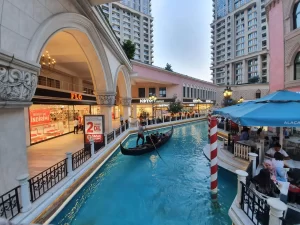 Do të mahniteni, ndërsa shëtisni nëpër një kopje të qytetit italian të Venecias, ku është ndërtuar një oborr monumental, me një kullë të rrethuar nga restorante dhe kafene italiane dhe ndërkombëtare.